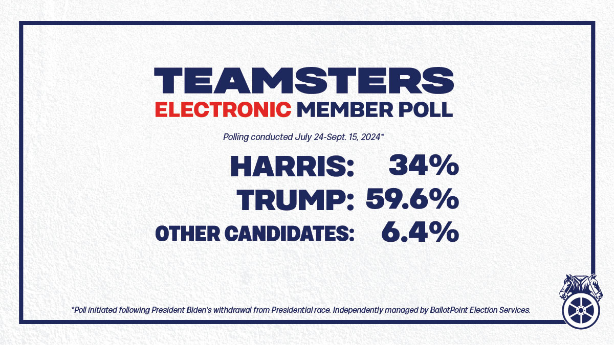 Eventually the Teamsters decided not endorse either candidate. HOWEVER, internal pollings from the Teamsters themselves proved almost 60% (750K+ members) chose to back Trump over Harris.
