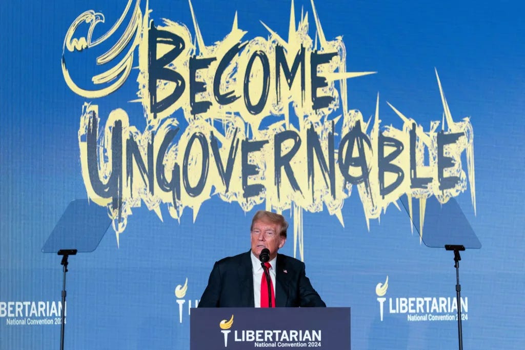 What you just watched with Trump's speech at the Libertarian Convention is the Art of the Deal in real life.